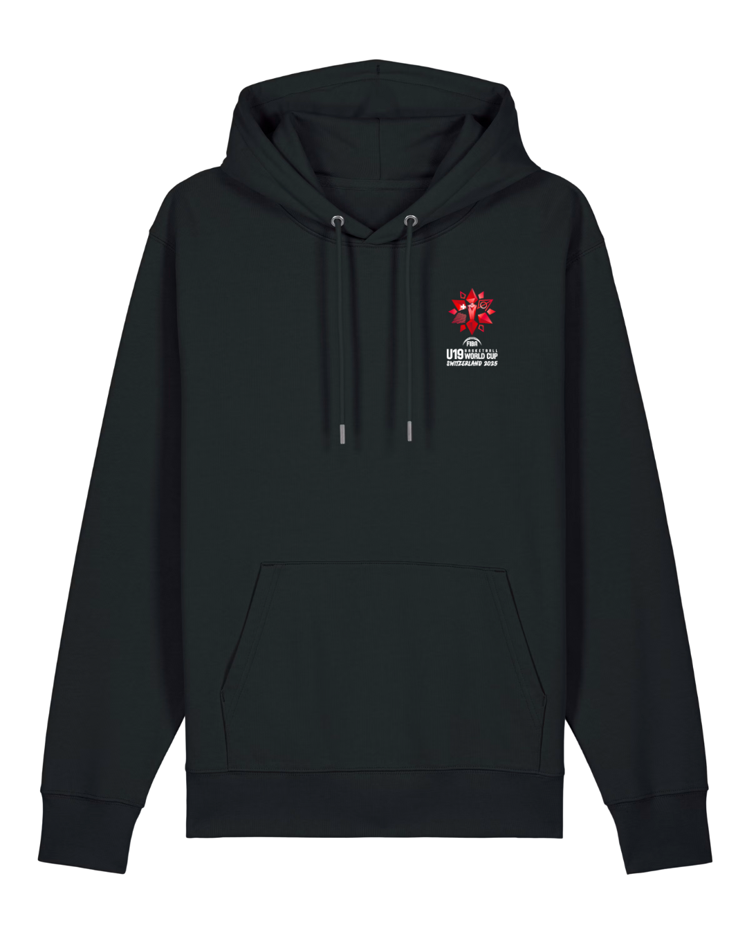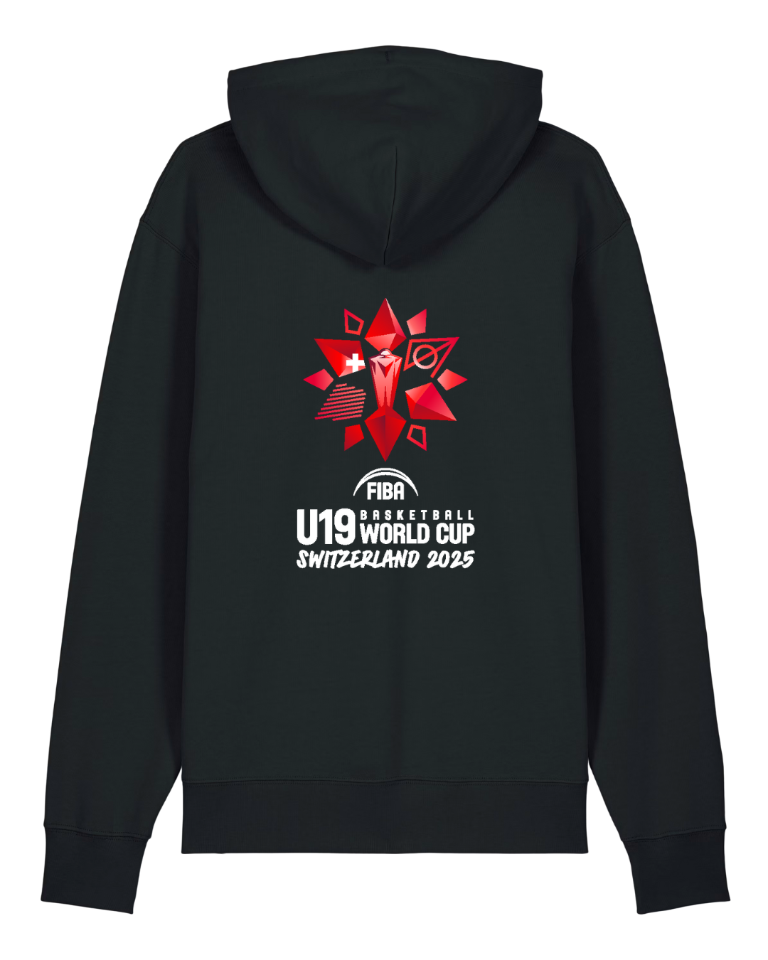 Affiche ton amour du basketball avec ce hoodie noir à la coupe unisexe moderne, conçu pour incarner l’esprit de compétition et d'équipe. À l’avant, le logo de la Basketball World Cup U19 s’invite discrètement côté cœur, tandis qu’au dos, imprimé en grand format.